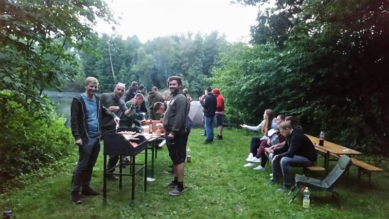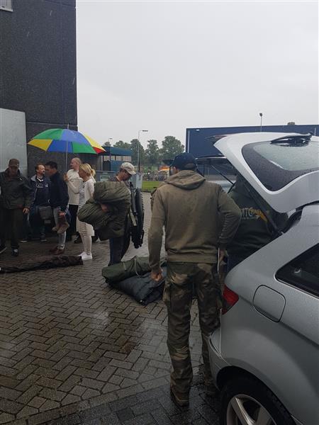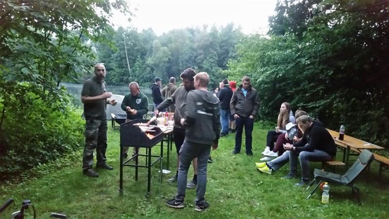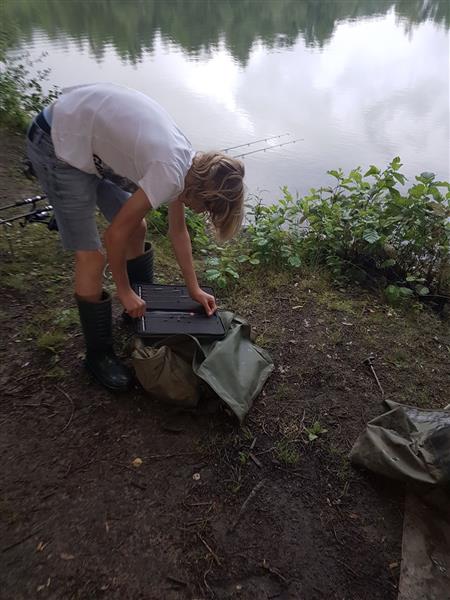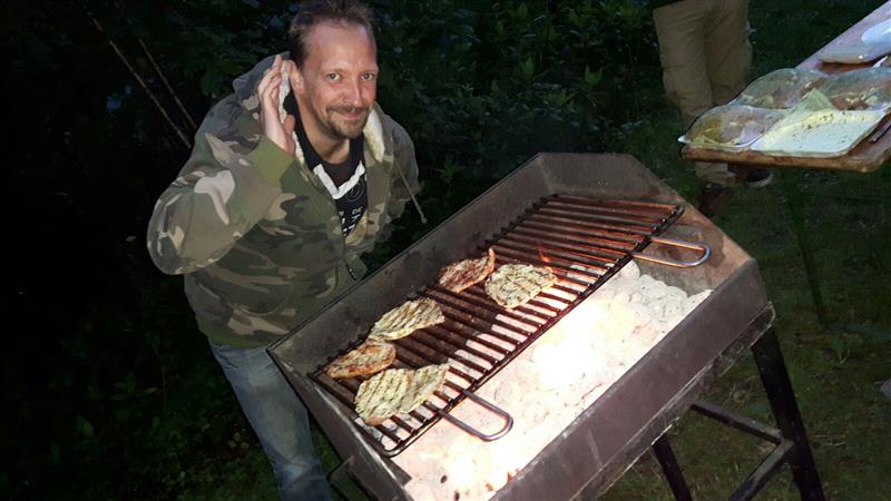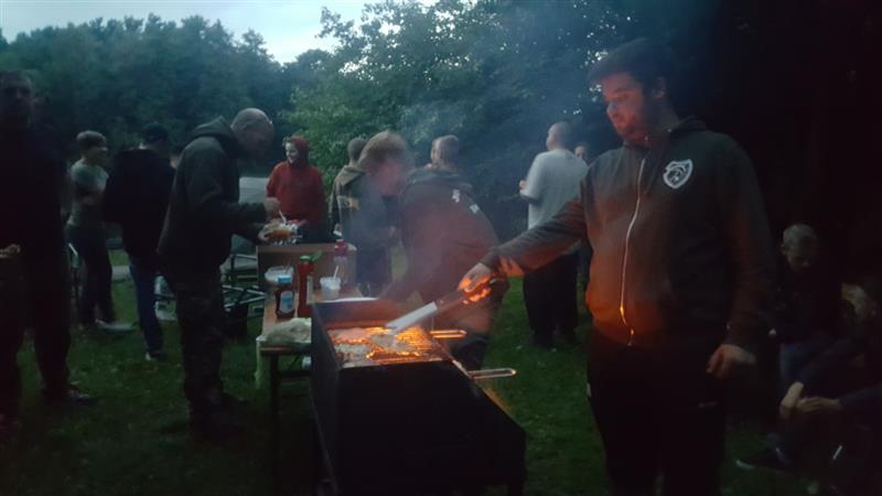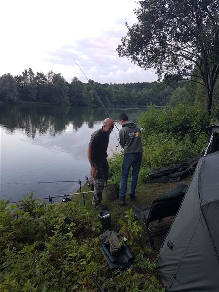 Bij aankomst de stekken verdeeld en alles vis klaar gemaakt. Na een BBQ van onze duitse vrienden kon er gevist worden.